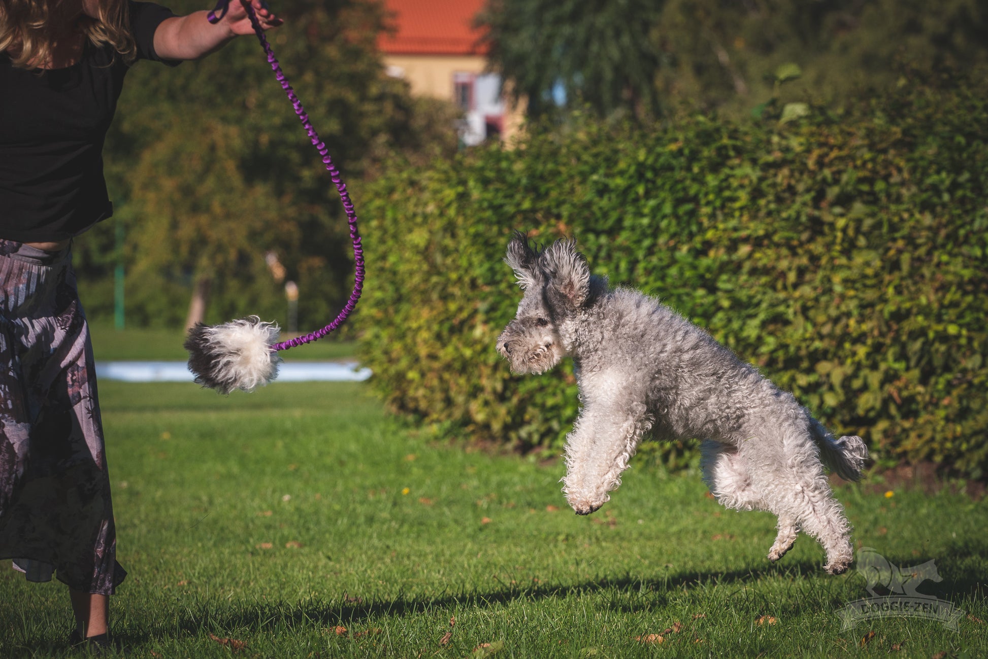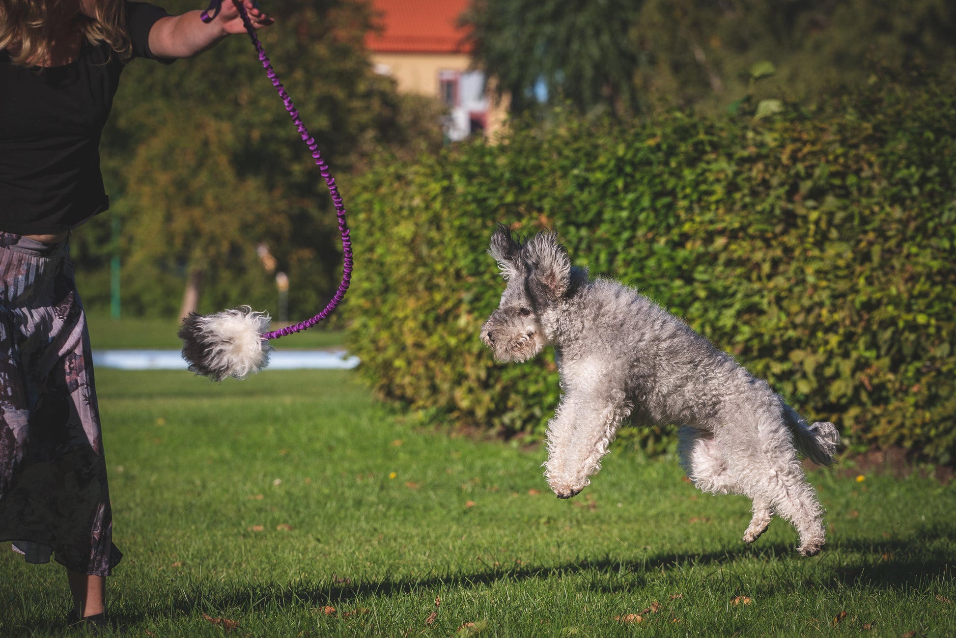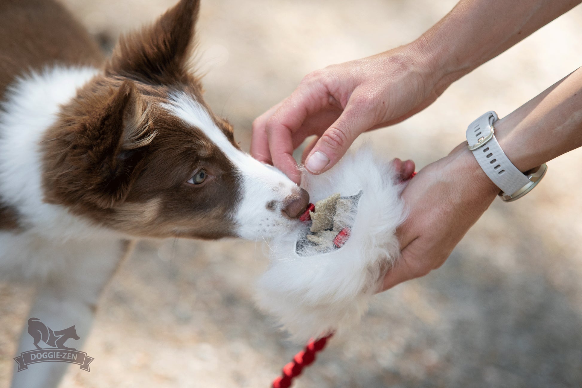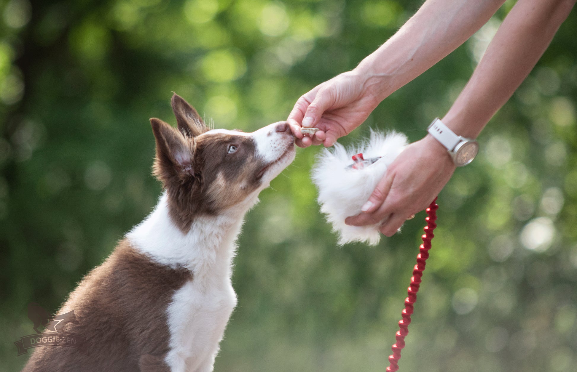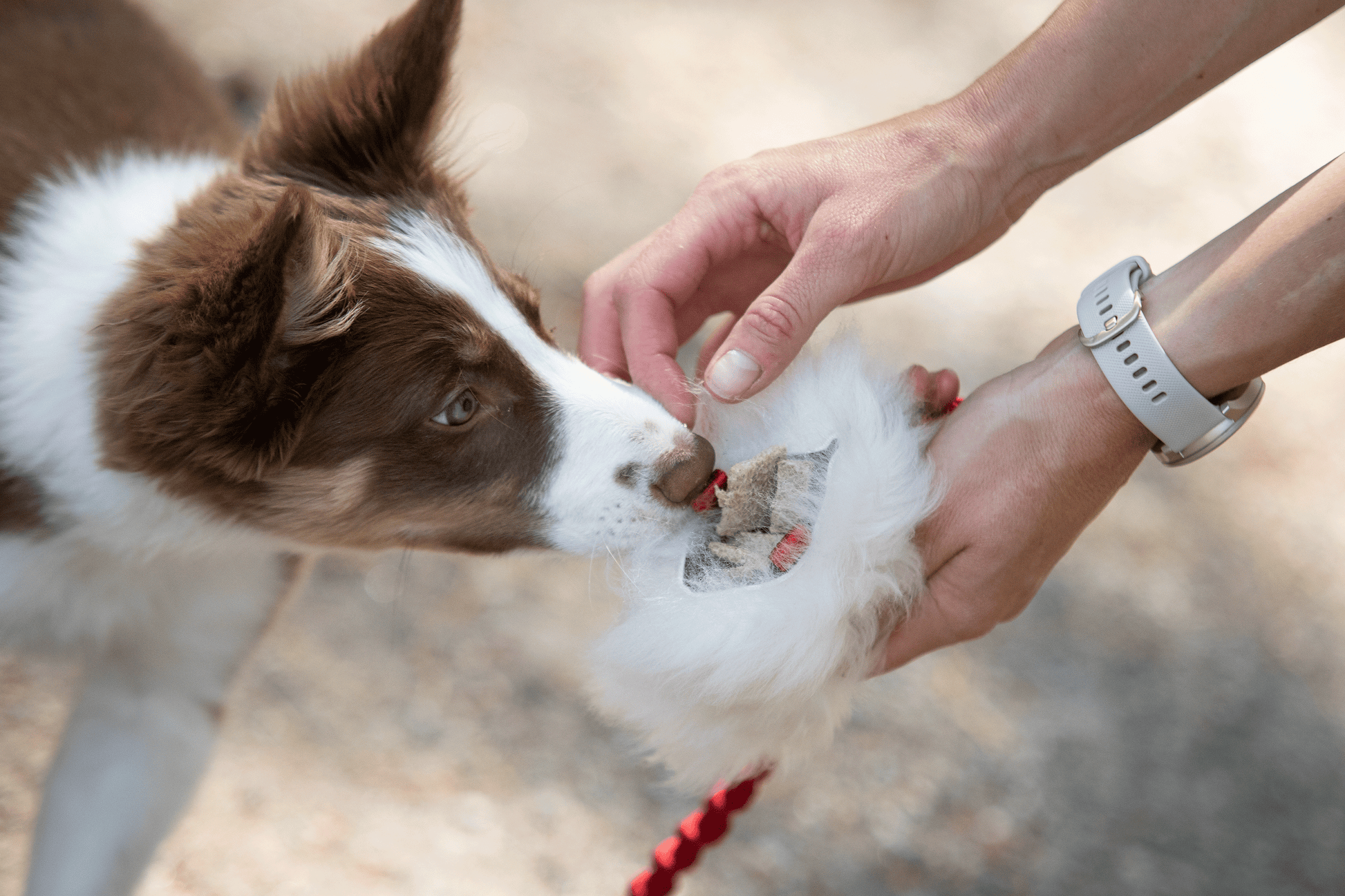 Har du en hund som er mest motivert for mat og du ønsker å få den mer giret på leke? Fyll leksaken med hundens favorittgodis og belønn den med godisen når den følger etter eller griper over leken.