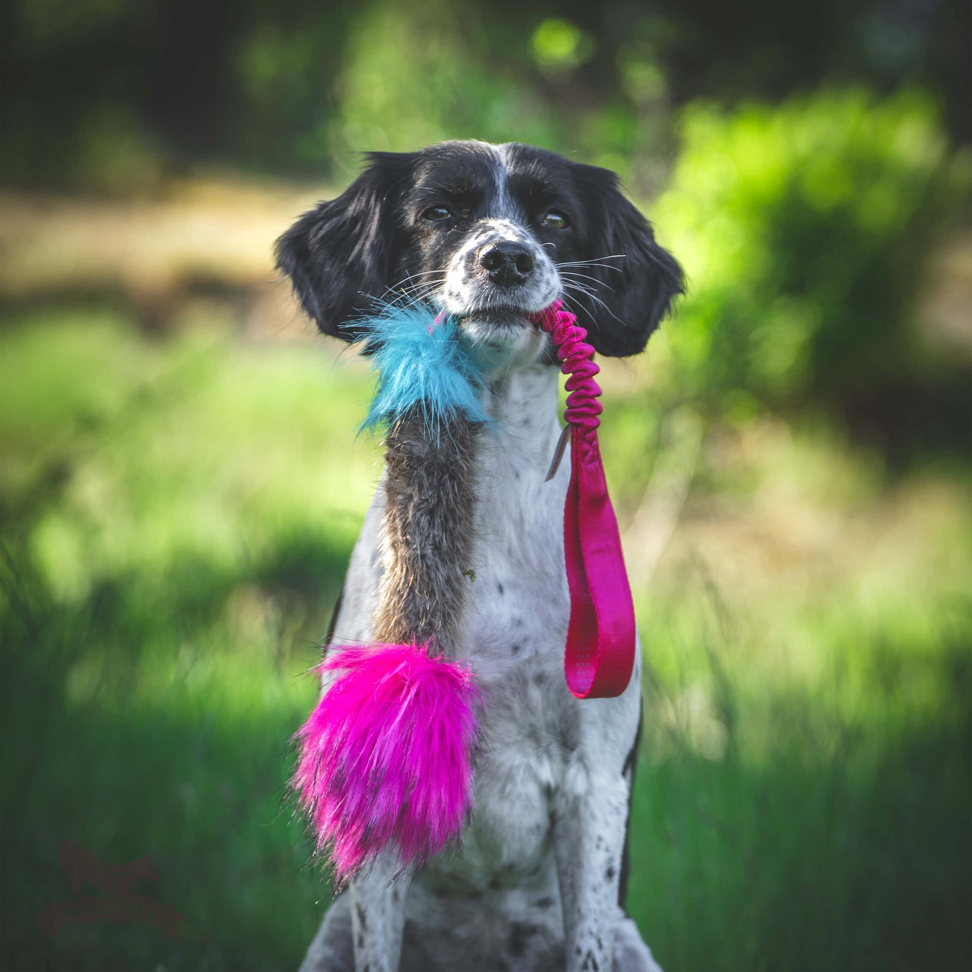Rolig kampleksak för hunden som älskar bäver och pip. Leksaken består av elastiskt handtag, som ger en skönare kampupplevelse, en del mjukt och tåligt bäverskinn med tjock lyxfuskpäls upp- och nedtill, inuti den nedre fuskpälsdelen döljer sig en pipkudde.