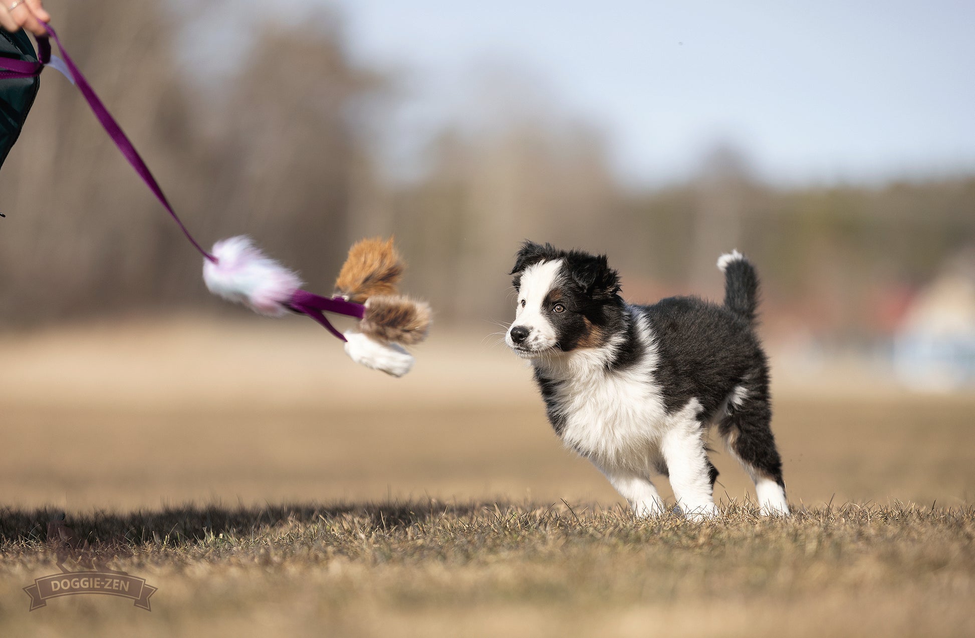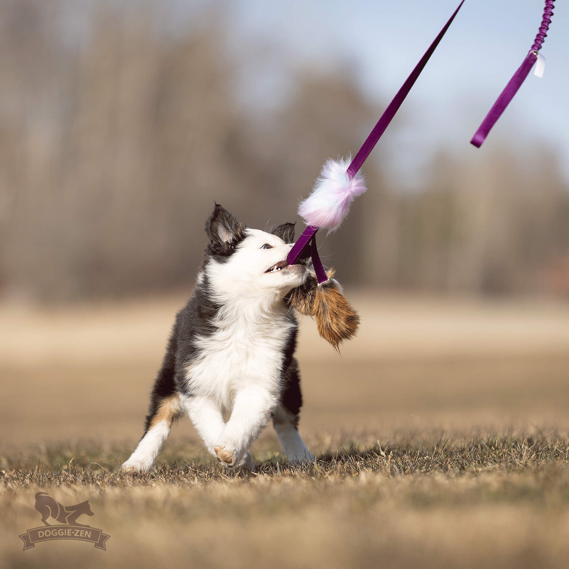 • Doggie-Zen leksaker är gjorda för aktiv lek mellan hund och tränare, de är inte gjorda för att låta hunden ligga och tugga på.
