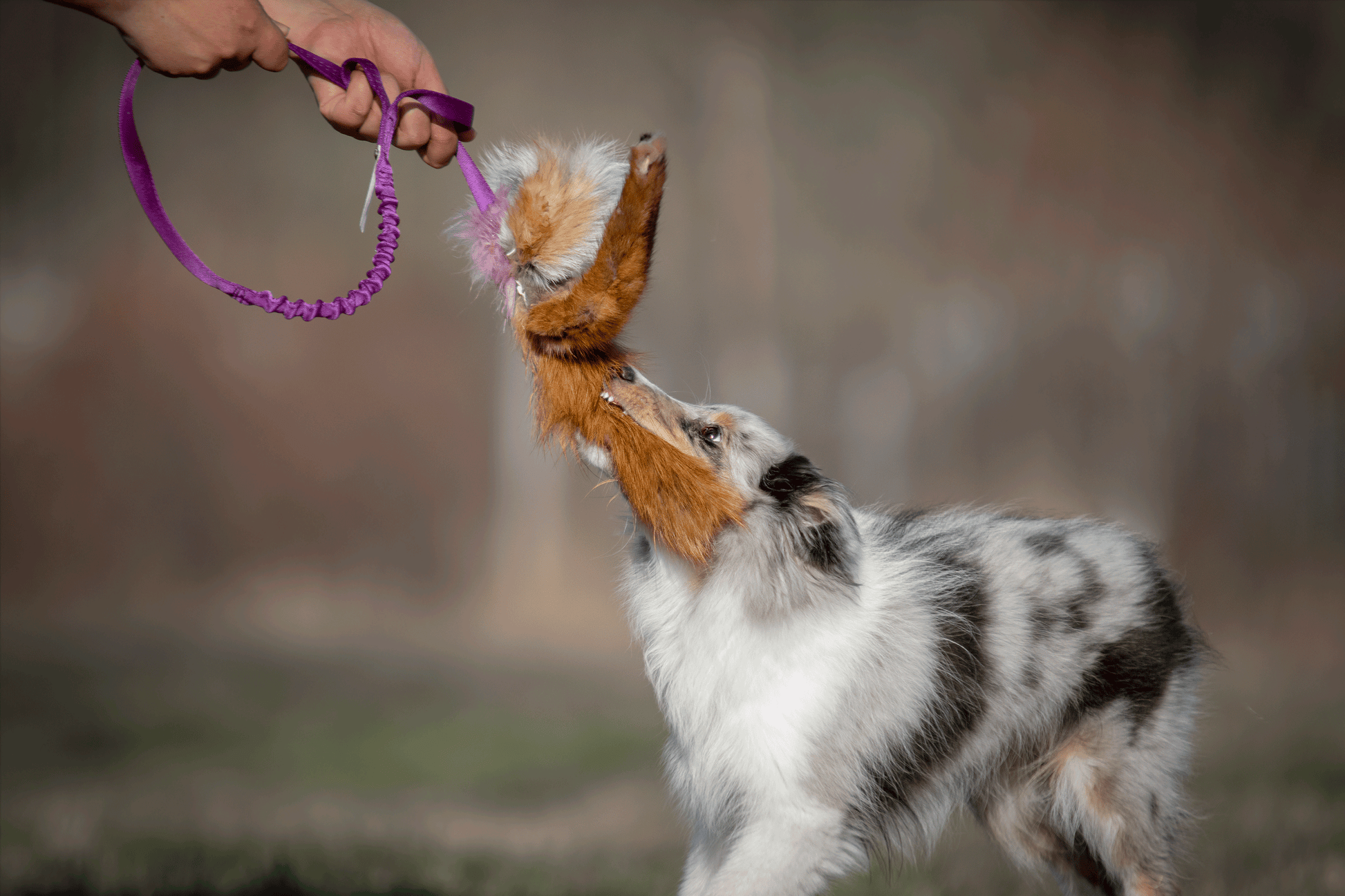 Mycket populär leksak med tre fladdriga "armar" som lockar igång hunden. Denna variant har mjukt rävskinn från svenska rävar.