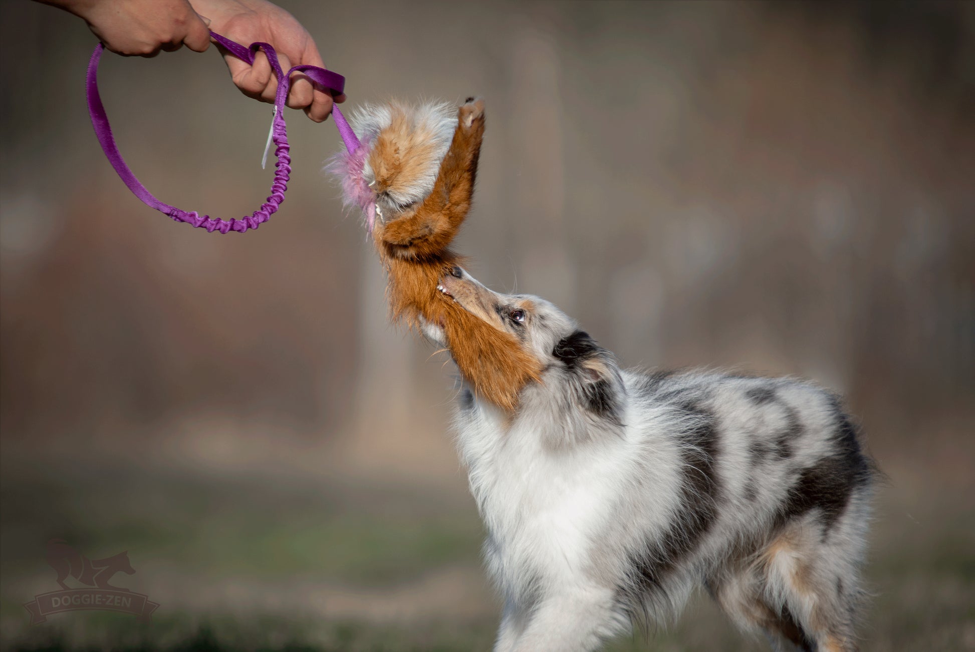 • Doggie-Zen leksaker är gjorda för aktiv lek mellan hund och tränare, de är inte gjorda för att låta hunden ligga och tugga på.