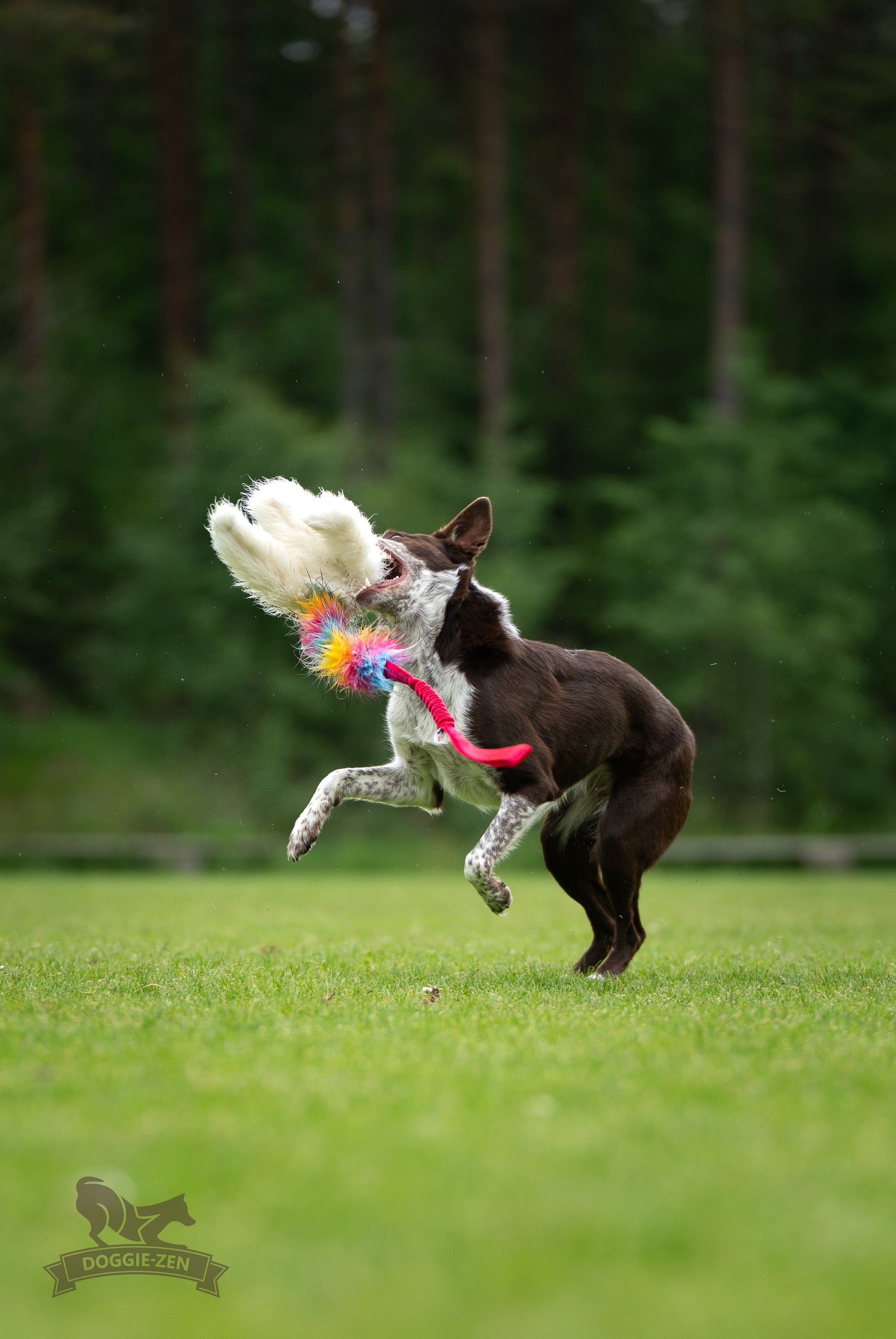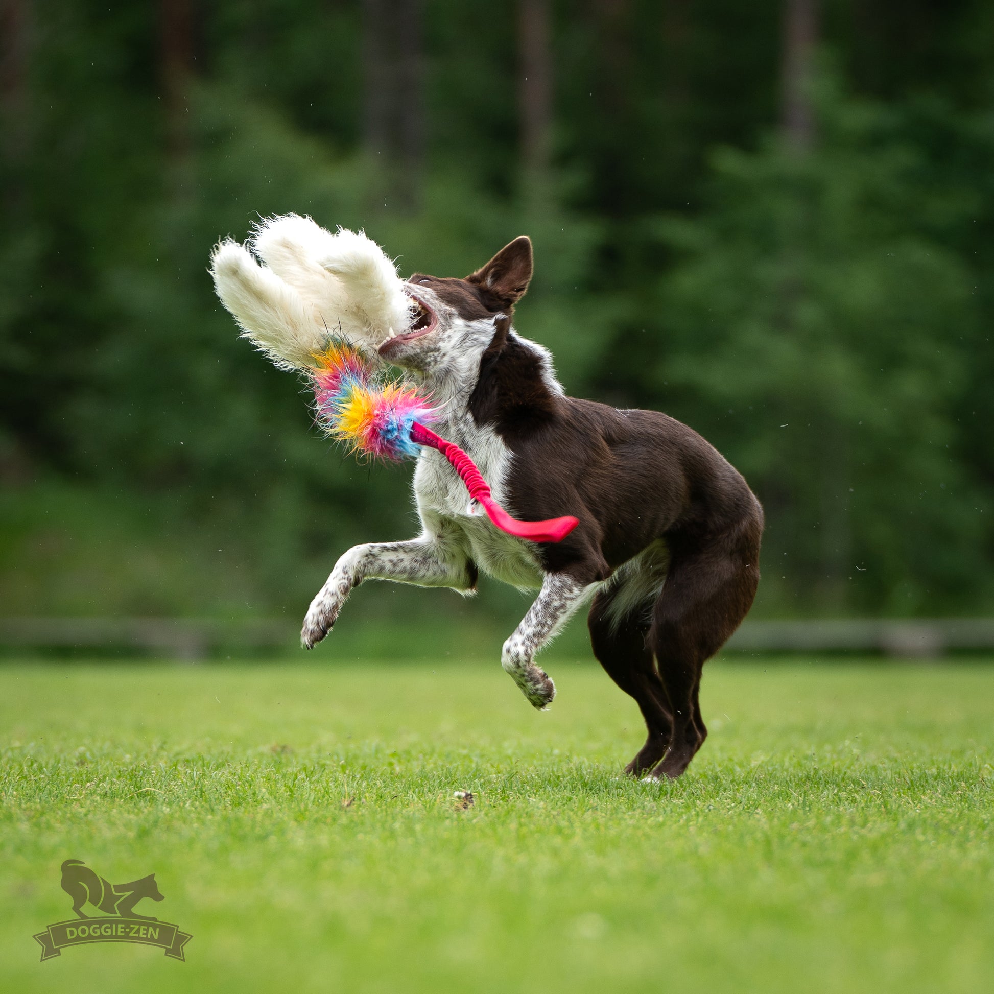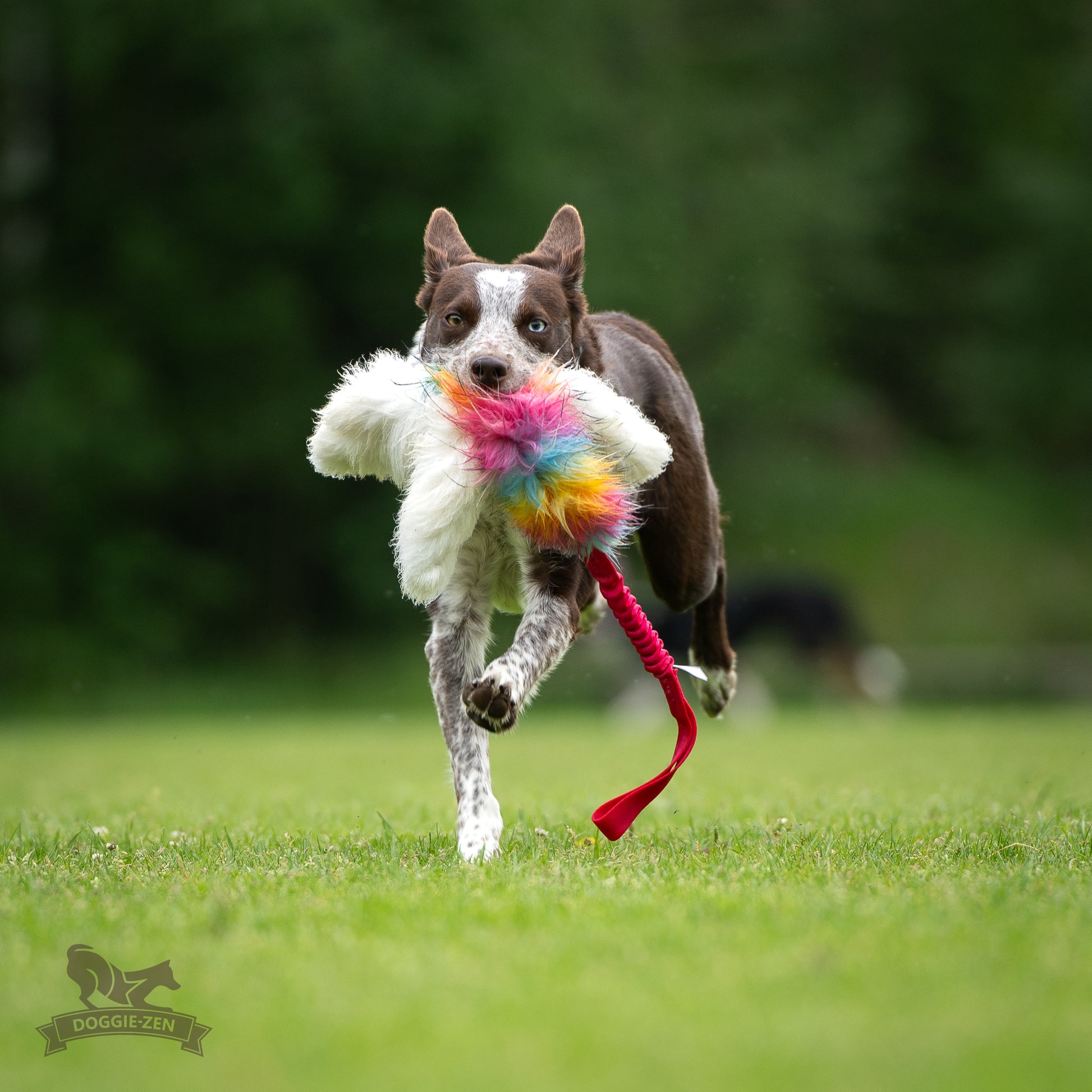 • Doggie-Zen leksaker är gjorda för aktiv lek mellan hund och tränare, de är inte gjorda för att låta hunden ligga och tugga på.