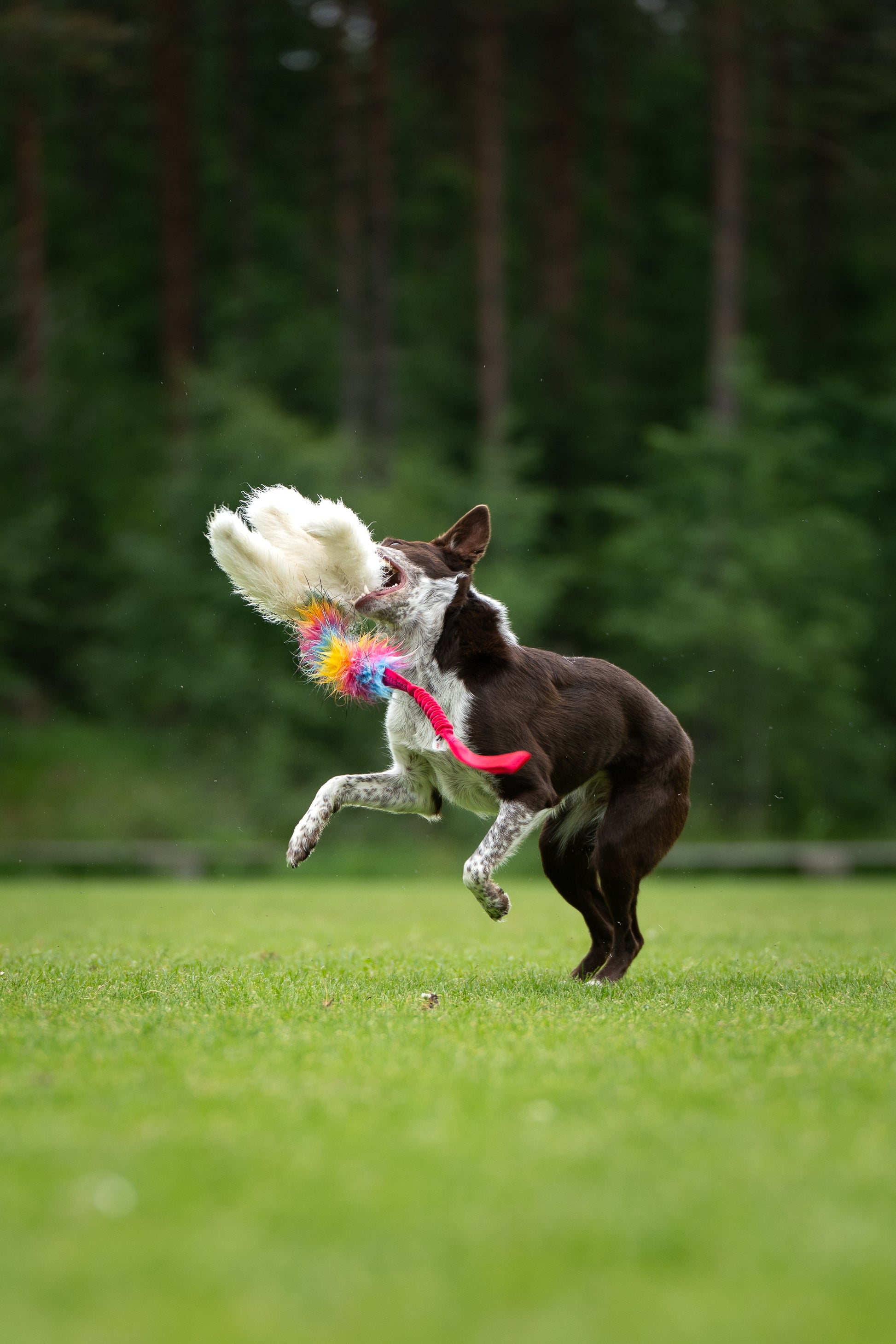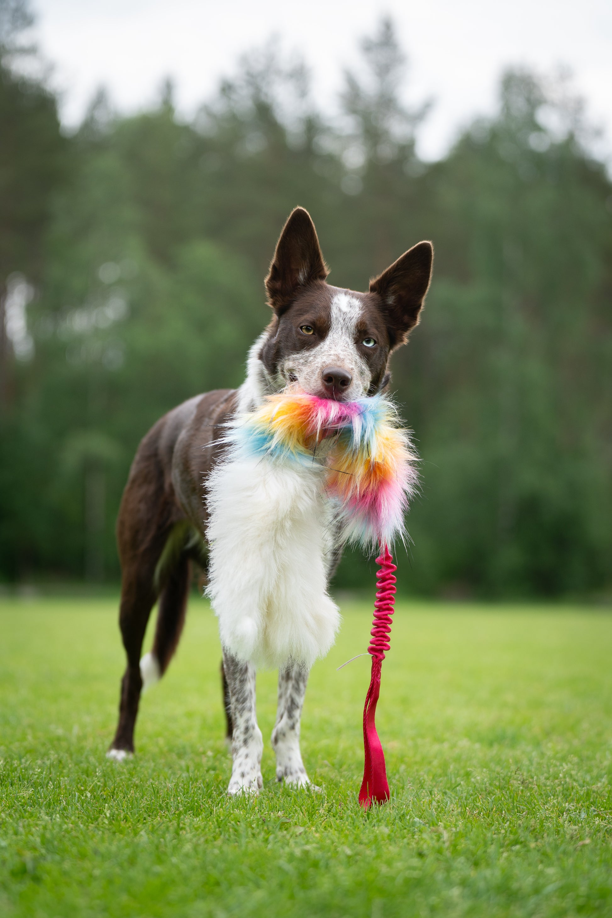 Leksaken består av elastiskt handtag för en skönare kampupplevelse, en bit tjock och fluffig lyxfuskpäls, samt tre fladdriga "armar" i fluffigt fårskinn från svenska får, som lockar igång hunden.