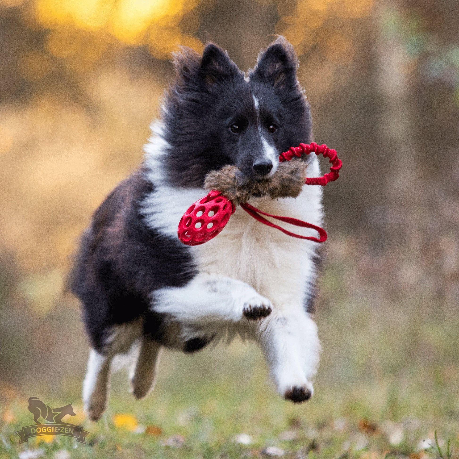 • Doggie-Zen leksaker är gjorda för aktiv lek mellan hund och tränare, de är inte gjorda för att låta hunden ligga och tugga på.