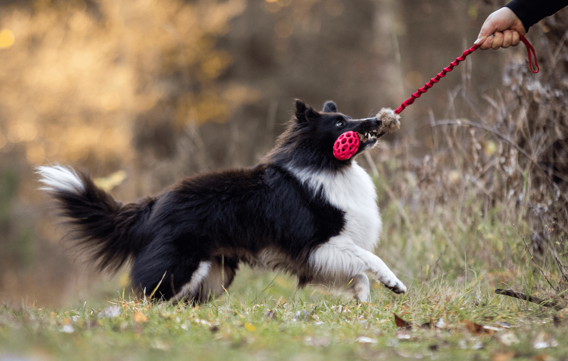 • Töjbarheten och formen på bollen gör att även den mindre hunden lätt greppar om den.
